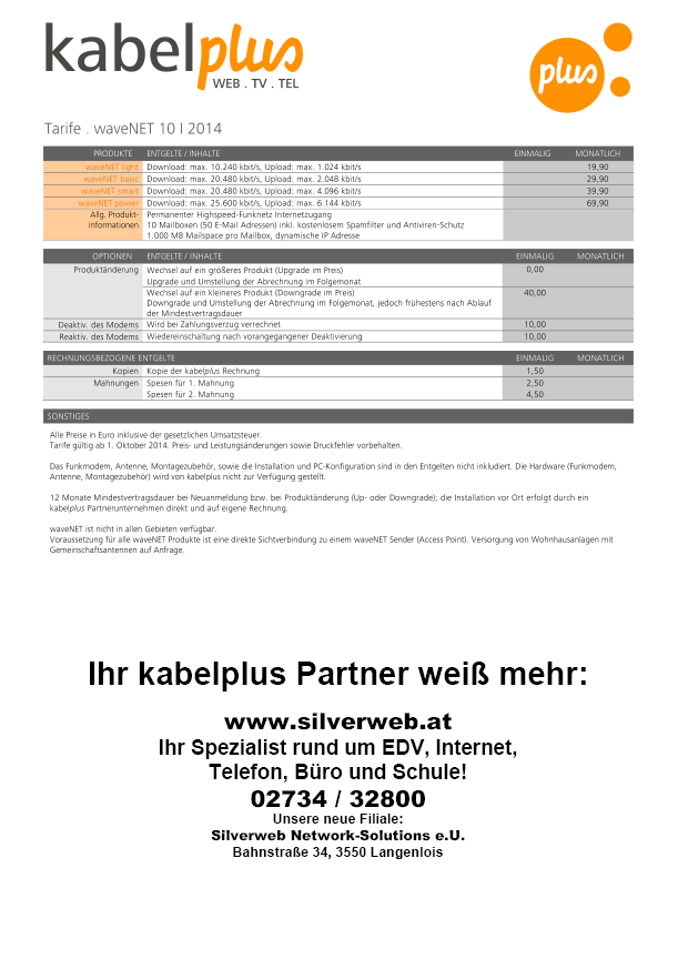 Tarifblatt Kabelplus